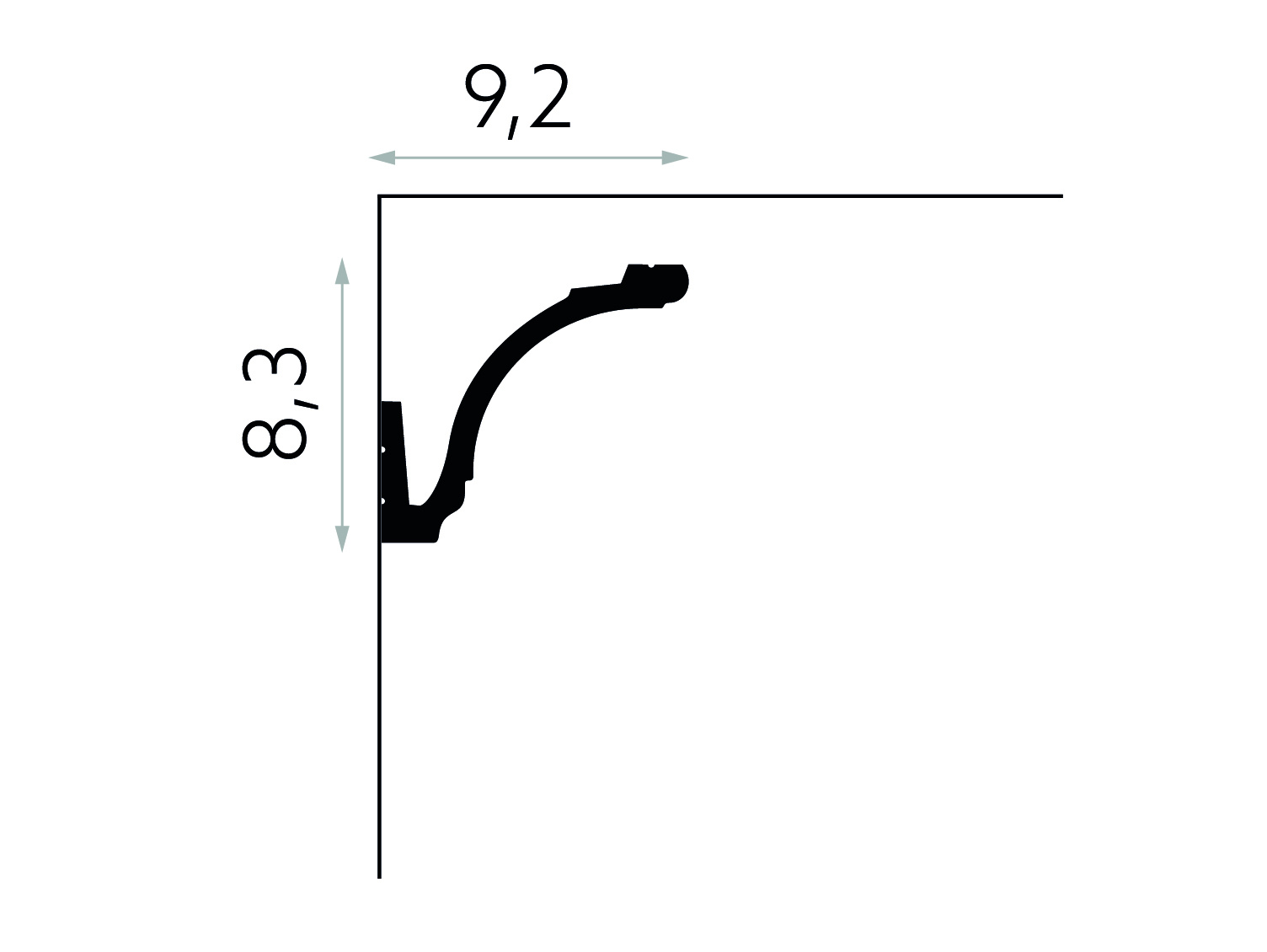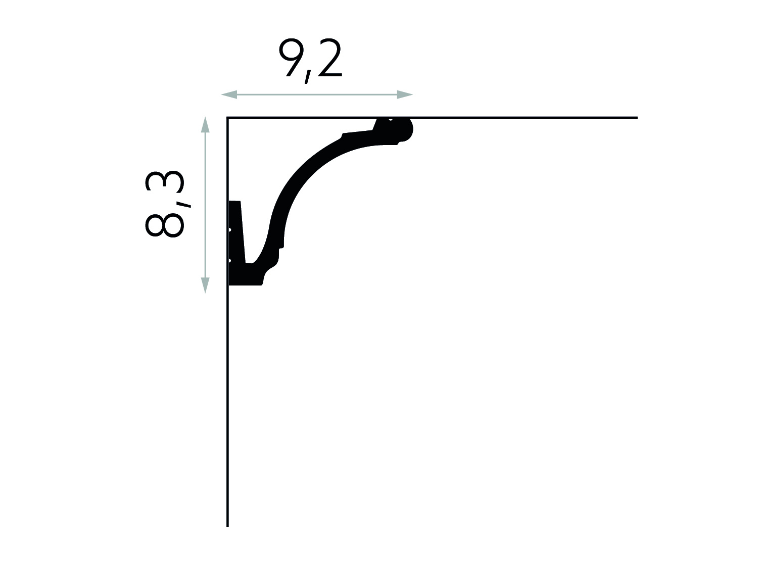Plint MD161 LED (92 x 83 mm), lengte 2 m, HDPS - LED sierlijst voor indirecte verlichting